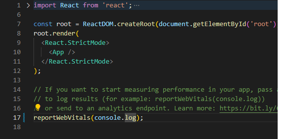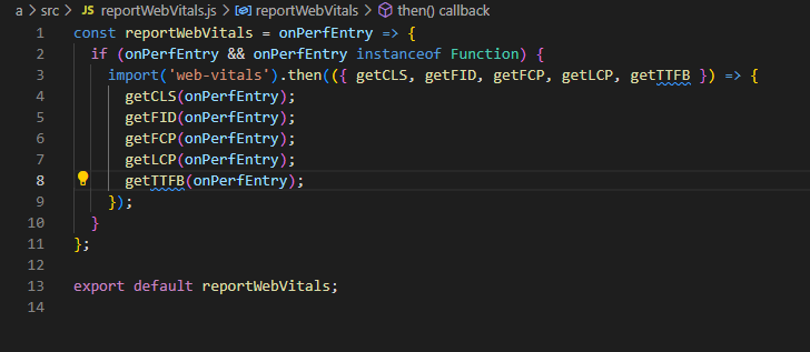 추가적으로, 성능 측정이나 분석을 위해 reportWebVitals를 활성화 해보도록 하겠습니다
