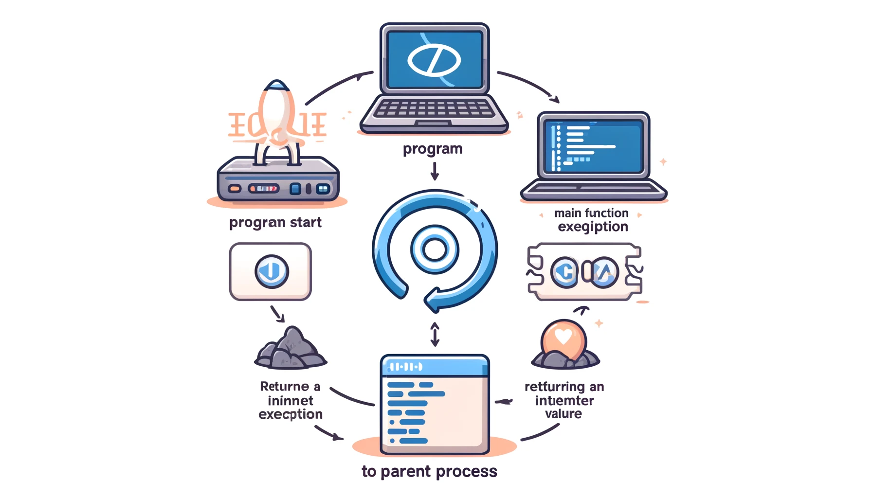 - main 함수에서 **return 0;**이 실행되면, 반환 값 **0**이 주변 함수로 전달됩니다. 이 함수는 프로그램이 정상적으로 종료되었음을 의미하는 값을 시스템에 전달합니다.