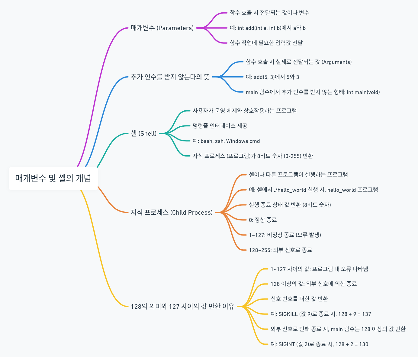 - 반환된 값은 셸이 프로그램의 실행 상태를 알 수 있도록 합니다.