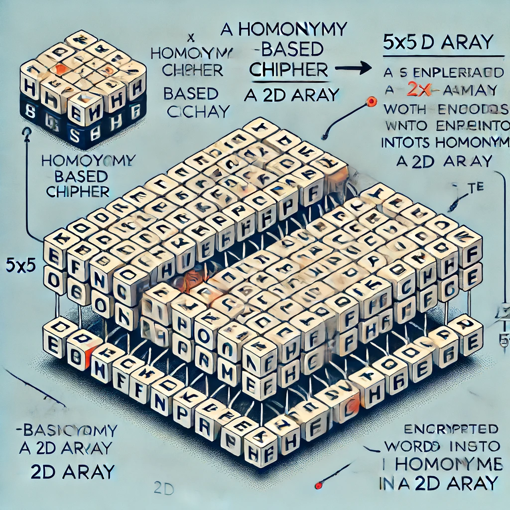 - 메커니즘: Vigenere 테이블을 생성하는 2차원 배열. 각 셀은 문자 'A'부터 'Z'까지 순환하는 값으로 채워짐.