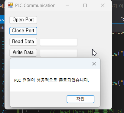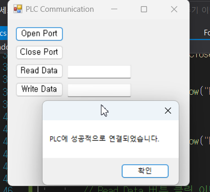 MessageBox.Show("PLC에 성공적으로 연결되었습니다."); // 연결 성공 메시지