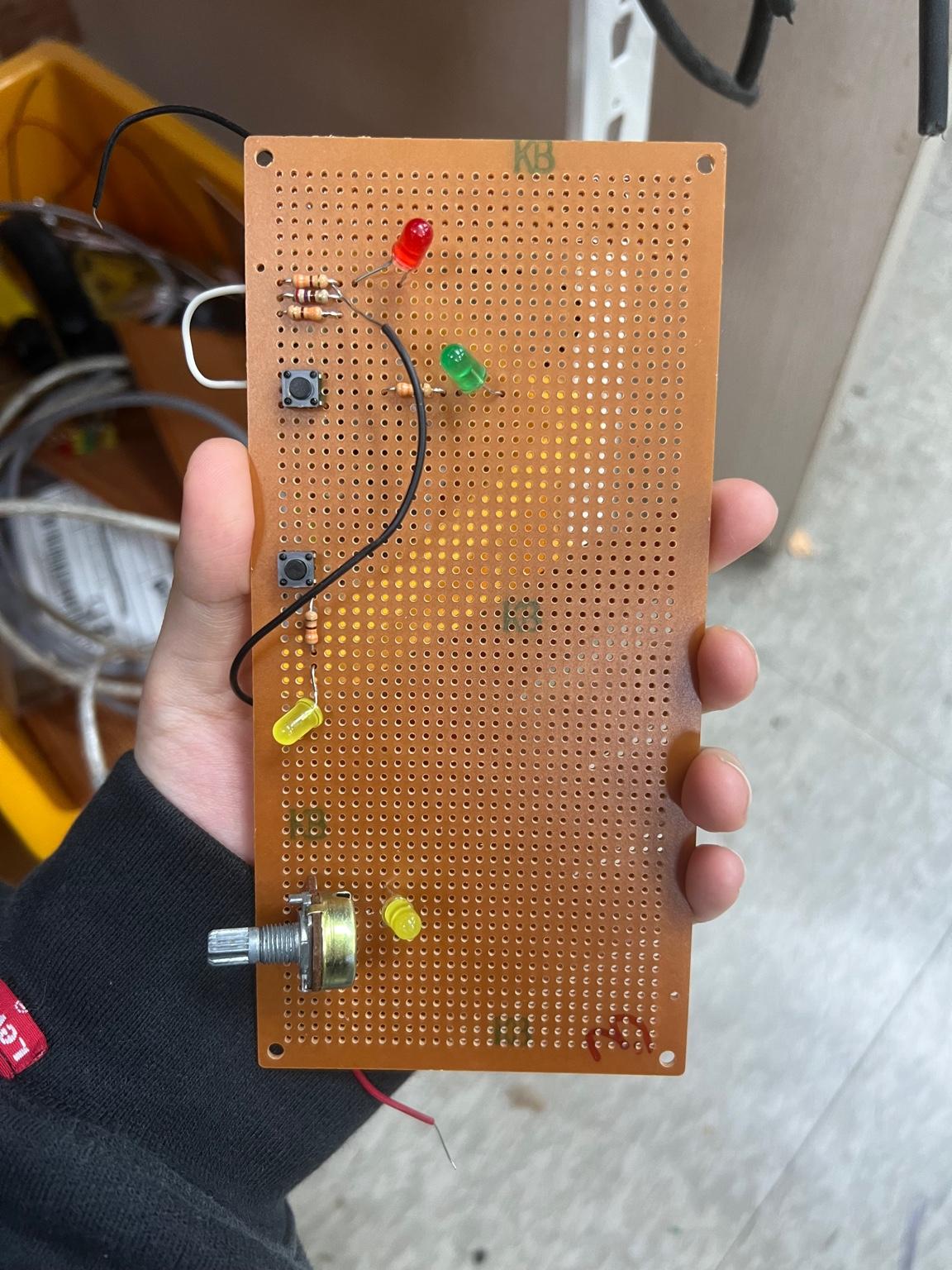 - LED, 저항, 푸시 버튼, 가변 저항 등의 부품을 브레드보드에 배치합니다.